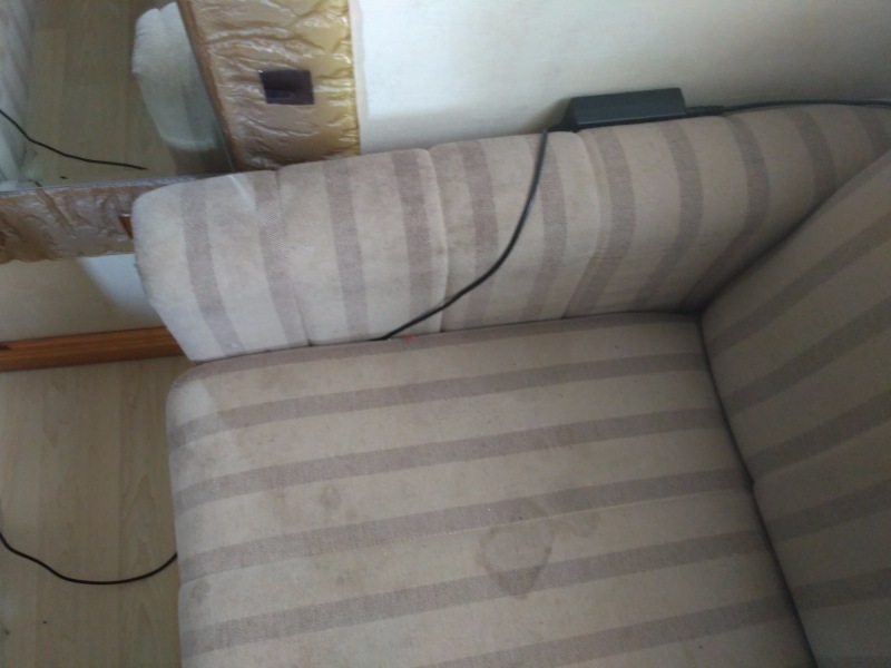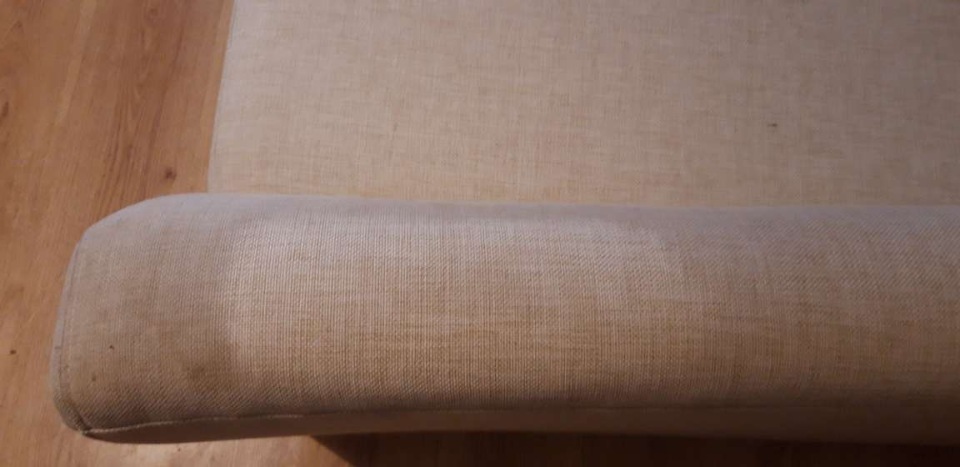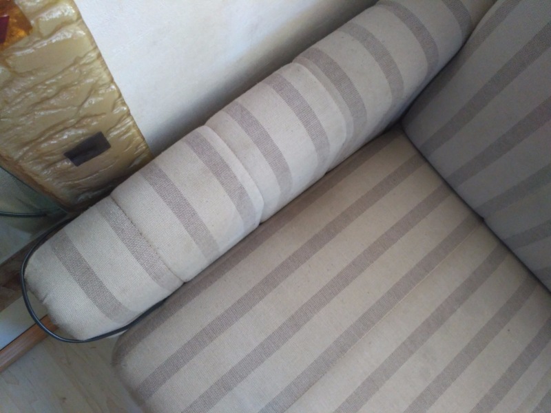 Хочется поделиться результатом бесплатного теста чистки без «химии» загрязнённого подлокотника дивана.